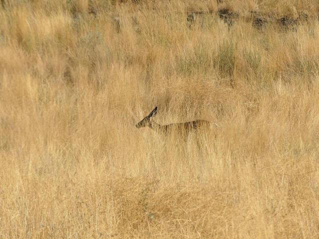 In colonial culture, it is considered a weed. Surely, that speaks volumes. Take another look. The person below is indigenous to this space, and even to the wheat grass she is walking through, but not to the system of roads and houses both she and the grass are placed in, or the relatively pure stand of seeded grass (to stabilize infill from road construction) she is passing through. That is Canadian space. Property developers (for what else is colonialism but property development???) are native to that space. Not mule deer.
