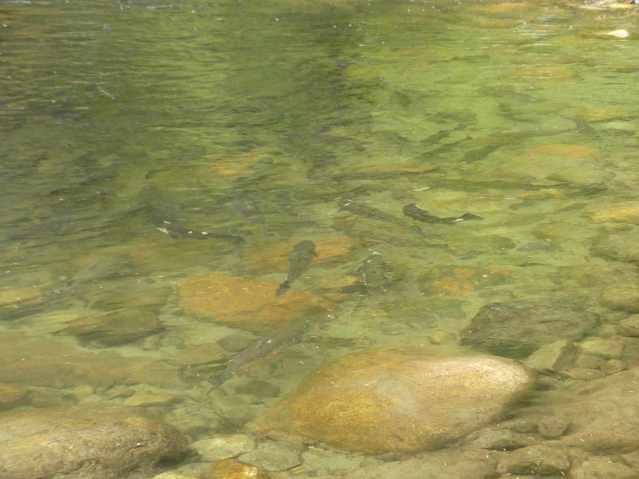 Dipper eats them all and sings. The salmon have come to lay some more.