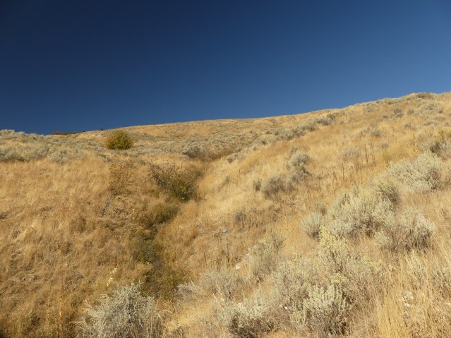 Note that there’s something on the hill above me that his attention more than I do. A hawk perhaps. They follow wanderers, screaming, to see what flushes up in front of them, or me. I dunno, but…