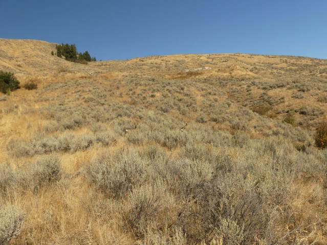 Such a simple thing. Look at the wetland hiding behind the hill, home of bears and porcupine, woodpeckers, grouse and deer. It is a herd up there. One can expect herds from it, because it moves time across what Western thought calls the seasons. Look how green those trees are, watered by a fold in an old seabed 100,000,000 years old, while the land the earth turns to the sun is dry with invasive cheatgrass and the big sage that crowds in after cattle have over-grazed the earth.