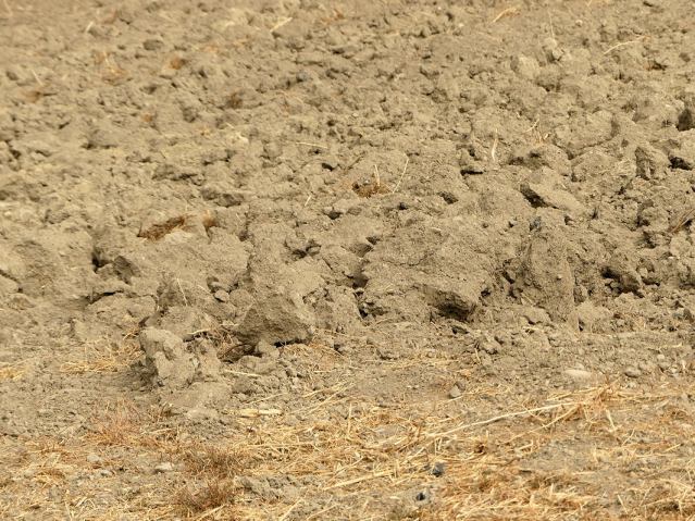 The only thing is, it’s not fruitful, it’s dead. Look at how this soil is nothing but congealed clay and sand. Living soil, that things grow in, is a complex environment of fungi, microbes, insects and dead and living plant material. This is just clay and sand.