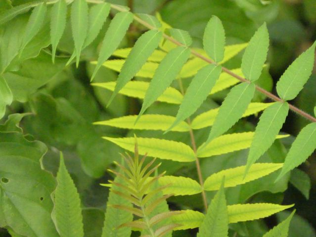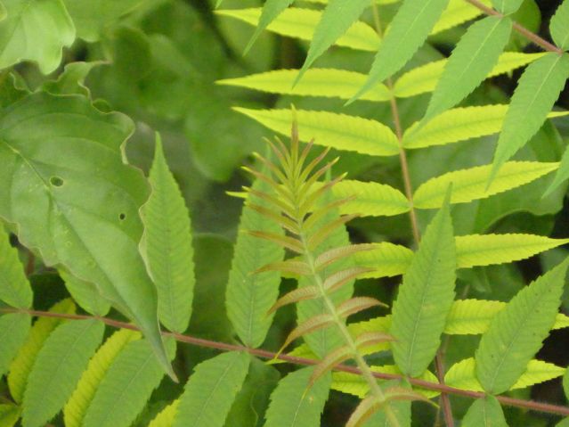 To global culture, the sum of individualized, word-based language, those are leaves. The word “leaf” determines what the humans, who use the word, will see. A human can come by, now and then, and say that these are “tongues” or “wings” or “feathers,” but global culture will soon explain that such “use” of language is “metaphor” and “poetry,” and move back to “reality,” that holds that the image shows “leaves.”