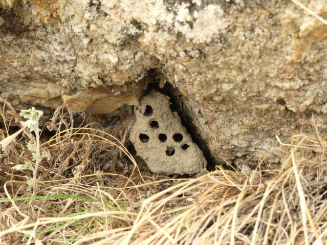 Not everyone has left home, as you can see.I have wasp (?) nests like this in my storage shed, too, and have been keeping my eye on them for two years now. This brood has settled into a better place all around: nice and warm for the winter, and sheltered from the snow. I hope you’ll think of them when the blizzards come!