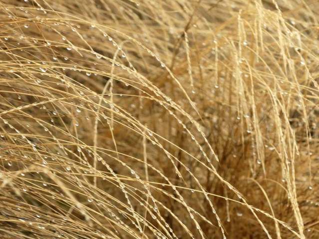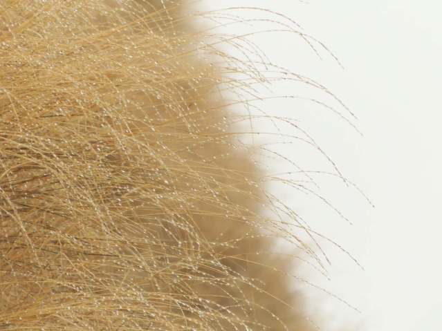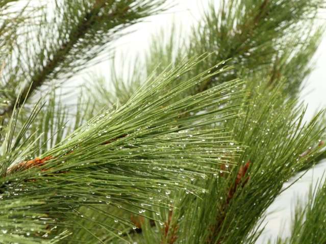 Not only that, look how needles, splayed horizontally by the weight of water, hold water droplets between them in stronger bonds, by their naturally-occuring capillary tension, making capillaries in the air. That’s a technology that can be adapted to water storage and transport systems.