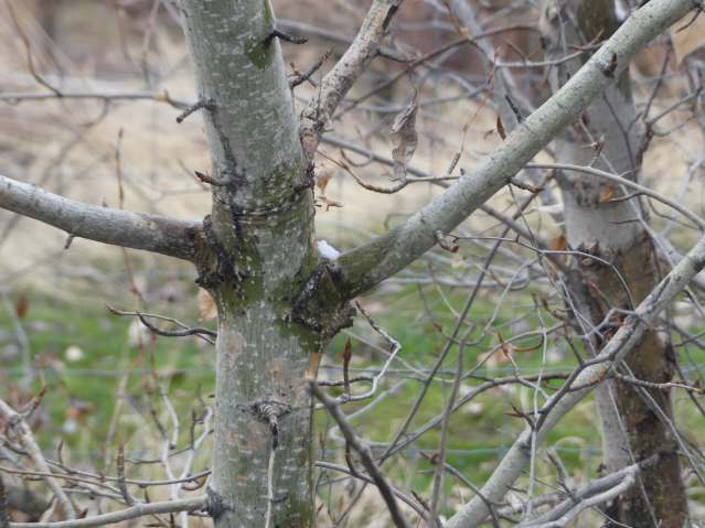 … are transforming time (as measured by water), depending upon exposure.Β The cottonwoods do this trick in the angles of their branches, from which meltwater spreads slowly outwards over their bark…