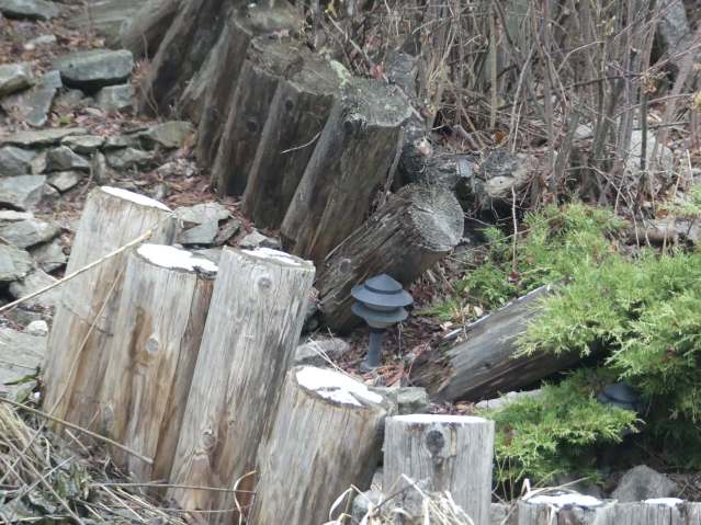 What is beautiful about this pair is that the larger rock, with its minerals and its seam of quartz, is facing the warm southern sun. Its snow disappeared quickly, into the plant community at the stone’s base, but look what the smaller stone, of more porous material, has done…