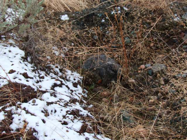 … could be faced with a north-facing one (instead of the open space in which we are standing), which would collect snow and shelter it from the sun. It could even be constructed to channel winter wind and gather deep drifts, to extend melting effects for weeks or months. The melting would come from the south-facing slope we see here. The channel between the two would hold water, which could then be put to use, much like this stone below…