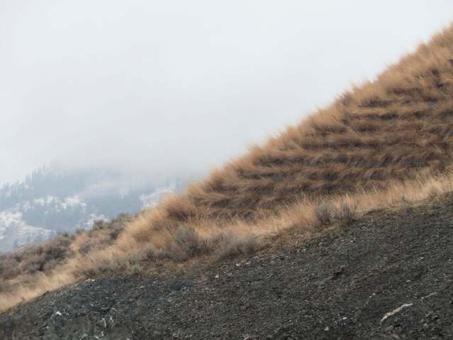 In this case, bunchgrass, rooted in the terraces of a stepped wire cage, is stopping the water from flowing, although not stopping the snow from melting or twisting it through time, as the cottonwood does. It simply melts it quickly, then holds onto it, creating a slow waterfall weaker than the roots of the grass. The base of this simple system…