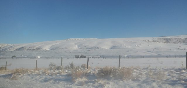It’s taken out of my car window as we drove through. I was struck by the power of fire, even in the cold. Look how the land, stripped of bunchgrass to hold the snow, holds it in its eroded gullies instead. This effect will only increase erosion, which is not a bad thing on slopes like this, as it creates water environments, which maintain life.
