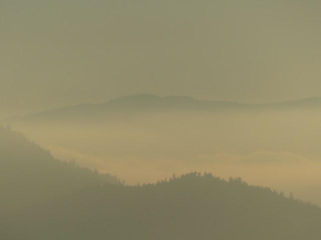 That stuff is explained away as “a temperature inversion.” You know: warm air on top of cold air, trapping all the stuff that usually evaporates away. Well, yeah, good to know. That stuff really makes the colours pop, though…to humans, at least. To other flickers, I dunno. Maybe it’s the wrong colour entirely.