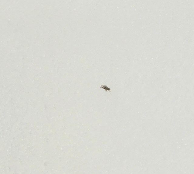 Under her shade, she melts the snow away. It’s a secret world down there. Fuzzy yellow bee flies fly out from their tunnels, flare in the sun, then dash back in.