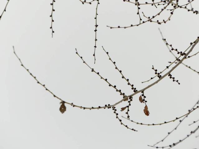 Very slowly, the roots will build up pressure in the trees now, which the sun will draw out many weeks in the future, maybe as late as early April. Now, the trees are awake, and feeling their way back into growth. Note the dead leaves on this mountain ash, the result of the early frost which set the tree’s dormant clock early, and prepared for today’s swelling before the winter even began. No tree can predict the coming weather, but every tree can create opportunity by bridging two atmospheres, and transferring cold from one to the other with chemical and physical signals.