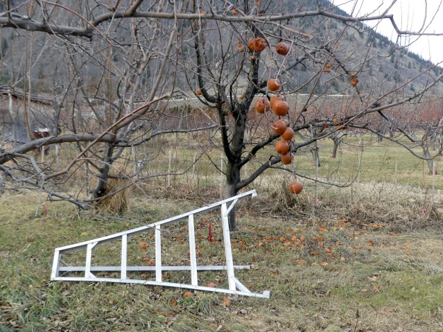So, like, winter comes and it’s time to run. Apples (Granny Smith) still on the tree. Ladder? Who cares. It’s cold out there. Run.