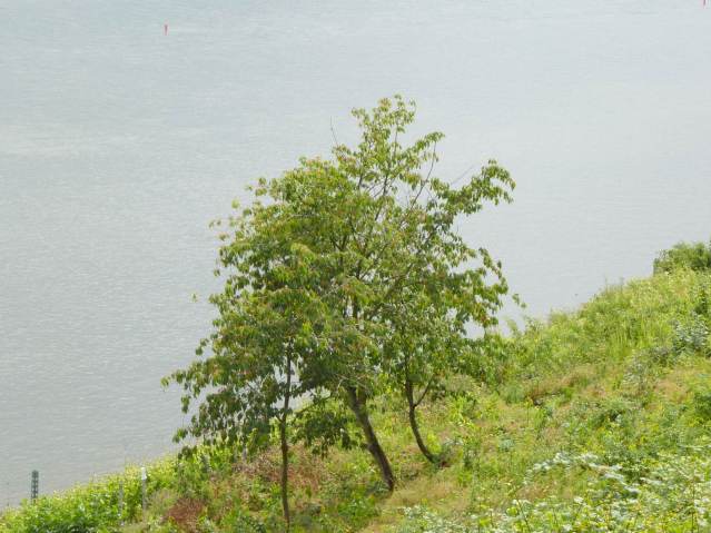 This cherry tree is replicating the power of the stone in a living form — no more or less tended by human hands. In other words, some technologies end things and some continue them. Both are representations of states of human consciousness. The ending, as all curses, is dangerous, and liable to turn back upon its maker. A run (such as the á below the tree above) cannot be stopped or dammed, only diverted. If the only place for it to flow is through abstraction, through that iron cross on the Bockstein, for example, it will flow there, but far more than the flow will be channelled or concentrated. The human that receives the abstraction, will flow in the form of the abstraction, and as the original action is a stopping of life-energy, that will be the ultimate result of the diversion, unless it is continually renewed from the Earth. These vineyards along the Rhine do do that, out of their Celtic roots. The orchards and cattle ranches and vineyards of the Okanagan do not, because they flow from the abstraction itself.