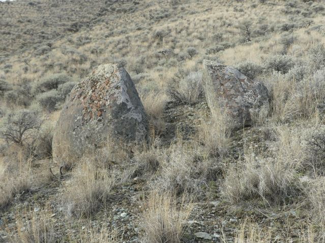 Yet it is “significant.” Some examples from the Thompson Gorge. Here’s a roadside shamanic stone. It’s a bodily shape that concentrates a landscape, with inner and outer messages that are, in themselves, the only message. It’s not a language of thoughts, after all. And yet, it’s a human observer who can, within a human soul, mediate between the two.