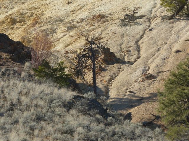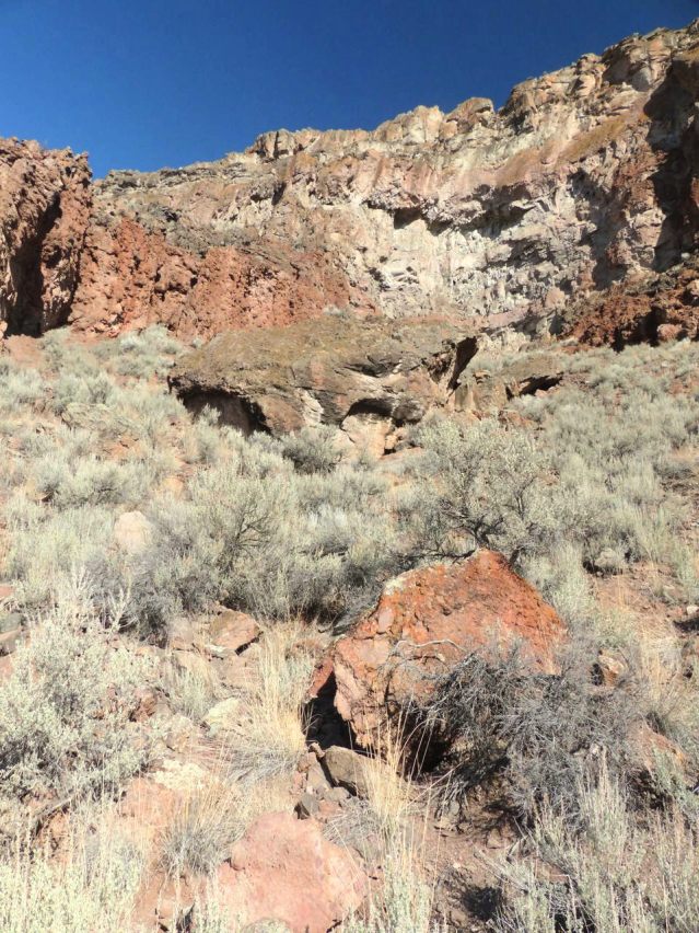 It’s in volcanic rock, melted by water, thrust up by gravity, and eroded by water again, and in the sagebrush that lives off the clouds that concentrate on its bluffs and still run over it.