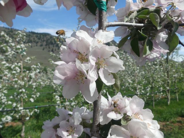 Yes, we do work like this for the bees. We also do it so that we can walk through the bees and share this day with them on Earth. On any non-organic orchard, these blossoms would all be poisoned by this point, to reduce thinning labour later, but let’s face it: you’d like to work among these trees, right?