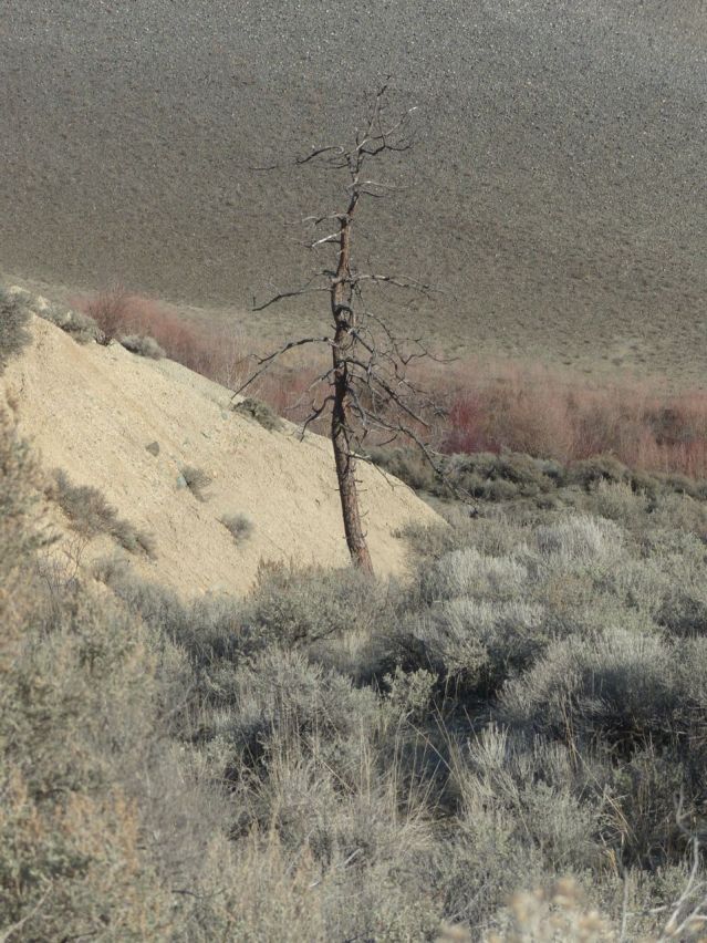 Because, I mean, hey, if anyone can’t read the pine tree above, is that the fault of the pine tree? Yeah, right, it might be the fault of your ancestors, but that’s tragedy. You gotta bite it and swallow and move on with grace. If your answer is, “Pshaw, no, it’s not like that at all,” what are you afraid of? That the Earth will kill you? Hardly. Your ego, yes, it might set that aside, but, hey, the darned thingamajig is a piece of clothing. Can’t you unbutton it now and then and, well, to go all Welsh for a moment, run naked in the fields of the Lord? Or, well, in the cactus and bunchgrass volcanic crumbling slopes of Coyote? So to speak?