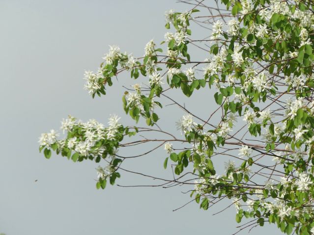 She’s making these berries for us, and bringing them down into our reach. There’s variation in the species: tall ones for the robins; short ones for apes and deer; and the bear gets whichever ones she wants. We could, in other words, speak of bird siya?, bear siya?, robin siya? and ape siya?, and harvest with respect (and some difficulty) on the alternate variations. Funny thing, though. Siya? is full of seeds, so not that popular among your regular ape crowd today; blueberries for them, in cell packs made of magically-mangled crude oil. Still, many humans keep an eye on siya? and some even make wine from her fruit, or pies that taste of marzipan, or traditional foods like pemmican, cheesecake (if it’s not a traditional food, it should be) and jam. And even though she is as much of who we are in this place as apes are themselves, and probably a lot more, they call her wild, and pay her no mind. On the other hand, a tree that is just as productive, the Chinese Elm, that apes introduced to these parts, and used to keep for its prettiness and its shade, because the sun, whew. You can’t even talk in full. Sentences. Eh.