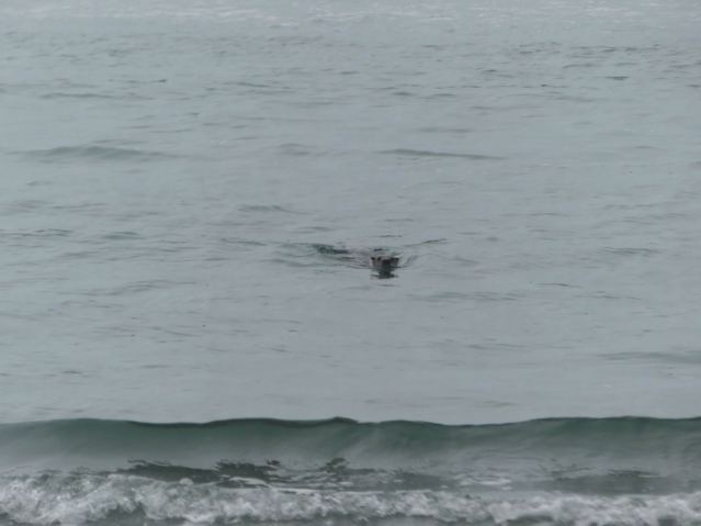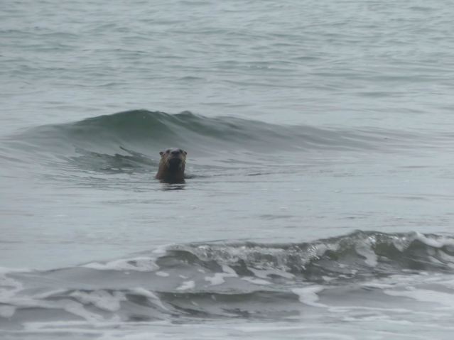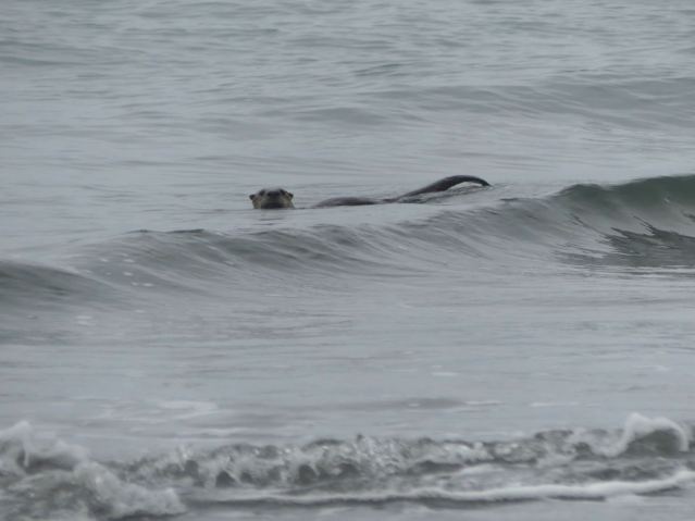 (Otter was fishing in the surf. One fish and one crab that I saw.)
