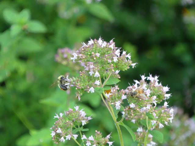 … and then both wild and domestic bees in the oregano. Note the subtle variations in mood. Your eye is precise enough to read all this information and give it emotional information, or mood.