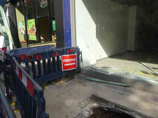 That weird bit of plastic is meant to protect the grass from run off from the lego-block foam forms for a tall, tall concrete wall. Picasso could have made this line with a swish of his brush.