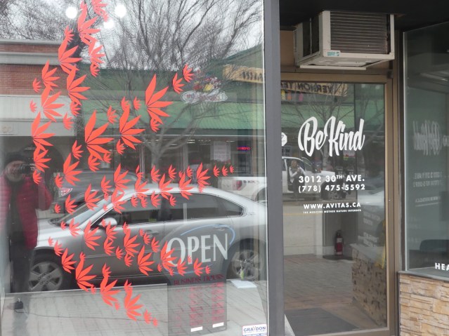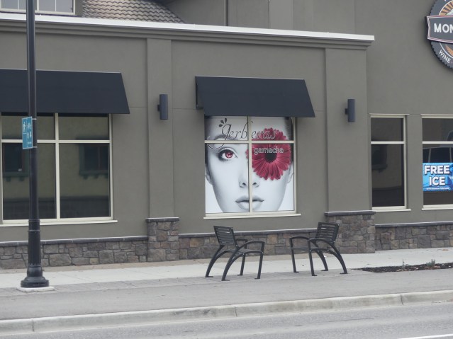 The point is that the images, the windows, and, especially, the shrubs and trees, are all jewelry. You decorate yourself with them, which is, well, inside out. They are not here in and of themselves. They are planted, for an effect. That is very Canadian and, frankly, it’s not indigenous. Now, in my valley, which is unceded indigenous space, with an indigenous culture at least 6,000 years old, that’s a problem. No, it’s not a problem that the city is here. The city is useful and brings people together to share the valley. No, the problem is, if we turn 90 degrees to the left and look south, this, in front of a real estate office: