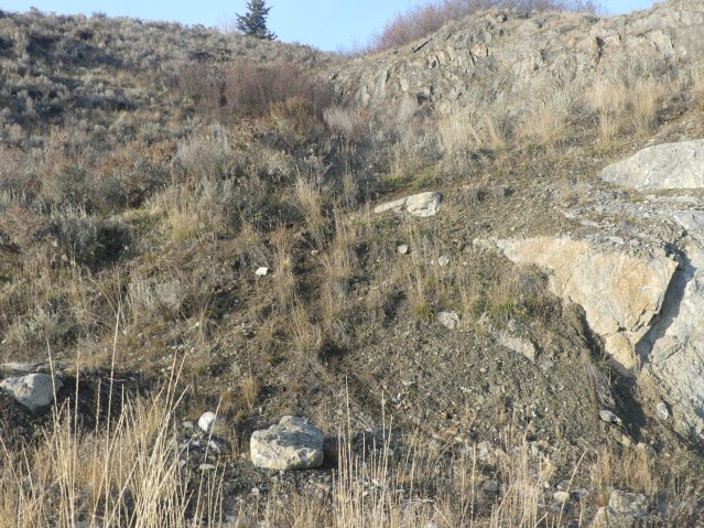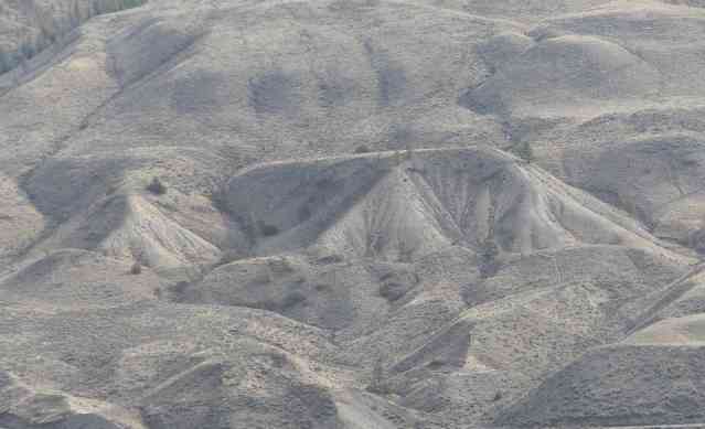 Not an accident. So, let’s compare. Here’s the eroding wall of an old lakebed in the Thompson River Valley. If you look carefully, you can find the deer trails.
