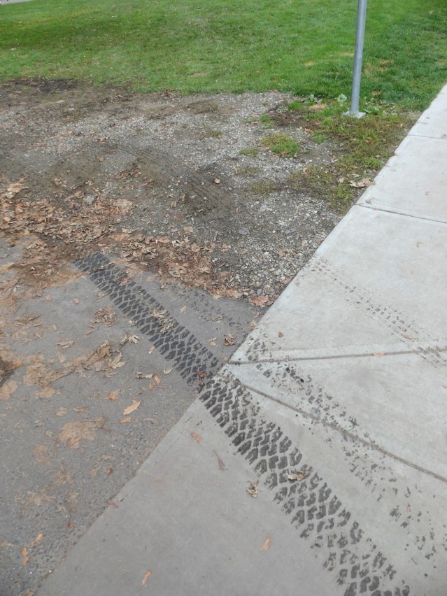 Fun, eh. Let’s do it again. Here’s a few tracks left in the city of Vernon. There is the electrical conduits at the top of the image. There’s the tagging track in the centre (heavily eroded). There’s the alley in the foreground. What is deepening here is decay. Erosion is breaking down the system here, rather than creating it, and what is it being replaced by? Why, moss and weeds.