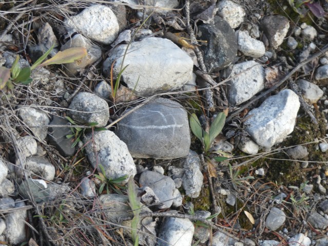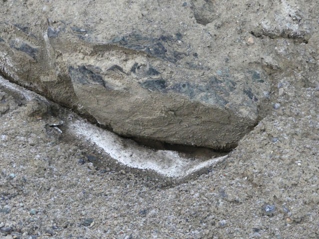 Stones are also breakable. This gives them the boundaries and a relationship to where-they-are-not you see above, and out of which life springs. Call that projection. Call that an energy-balance. It’s what you would expect from stone orbiting in solar space, drenched in water and moving it around in concert with the sun. The results, however, are nothing short of amazing. Here is some ancient bedrock, exposed by blasting, with its seams opened by the force, directing the flow of water, then releasing it. With nowhere to go, the water pools, then evaporates in the air and sun, leaving a snow of salt.