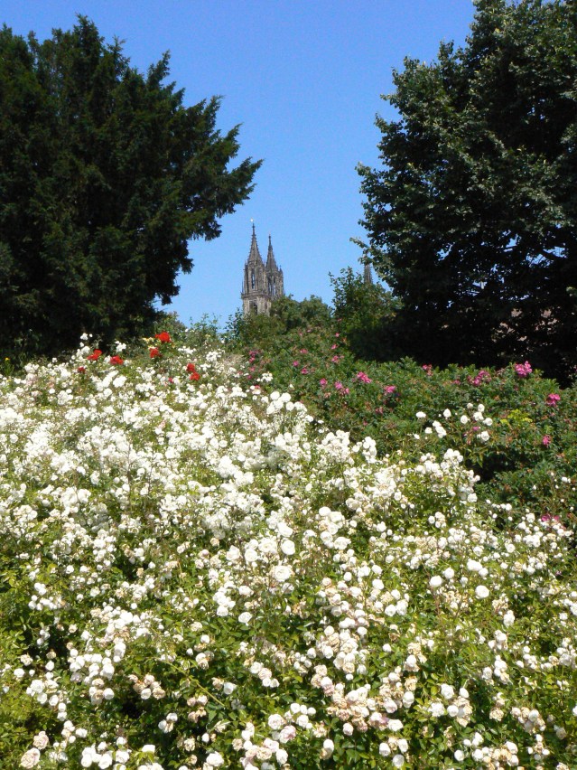 Goethe Loved it Here. Vineyards replanted post-reunification. And the roses, too. But the train is a good communist train.
