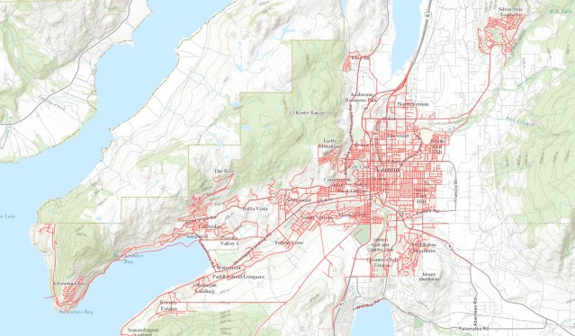 To say “Hawk hunting chickadees on the edge of The Vineyard at the Rise in Vernon” is not the land’s story. That is the story of a mapped place called “Vernon”. The image below is the “build” map of Vernon. It clearly shows the nature of the place as a grid laid over something else. Call that the “land”. It’s not a part of the map and is not represented by it.