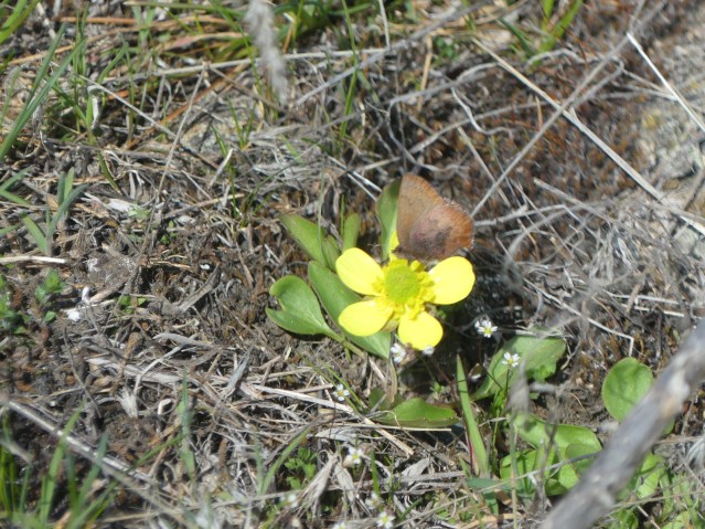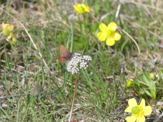 I first wrote that I couldn’t identify this pretty one. “It looks like a copper” I wrote, “but I found no listing that described it. I’d describe it as looking like a couple flakes of ponderosa pine bark.” Well, it’s a brown elfin, or Callophrys augustinus. It makes one flight. I’m sure it was a good one, in all that sun.