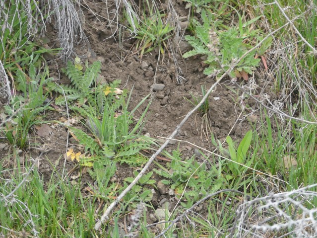 It’s fun to go out and read the weather by looking down, too. It gives a longer term view. For instance, the really poor shape of the early season cheat grass below suggests that although it was wet in the fall and this stuff entered winter in great shape, it has taken a beating on exposed southern slopes: by sun, cold, and then by sun again. What snow there was had little positive effect here. It didn’t flow down-slope. It evaporated.