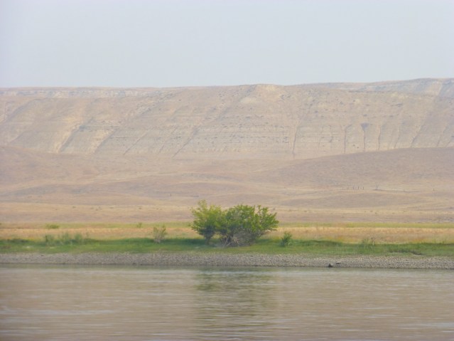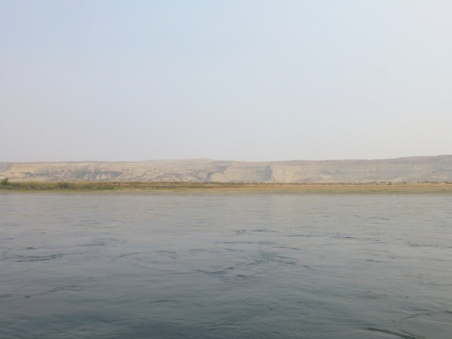 But there’s a catch to this, because the silt cliffs on the eastern shore of the stream were laid down there by the stream. They are its bed. Only a separation from them in time makes them “land” and a “shore” or a “bank.” This separation, however, is false. It is a way of reading human life as individual life, laid over a pattern in which human life extends for 12,000 years and more, likely 16,000 years, and with memory of when the flow was greater than all the fresh water currently on Earth. We live in that flow. As the flow curls around the eddy of the easternmost thrust of the Cascades into the deeps of the Basin to its East, its stillness turns it in a 20-mile-long curve within its former bed.