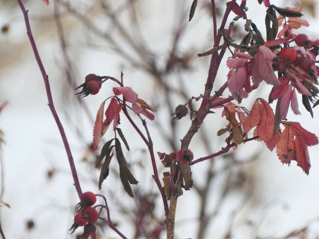 Look at the beautiful colours here, with wild rose and choke cherry and knapweed.
