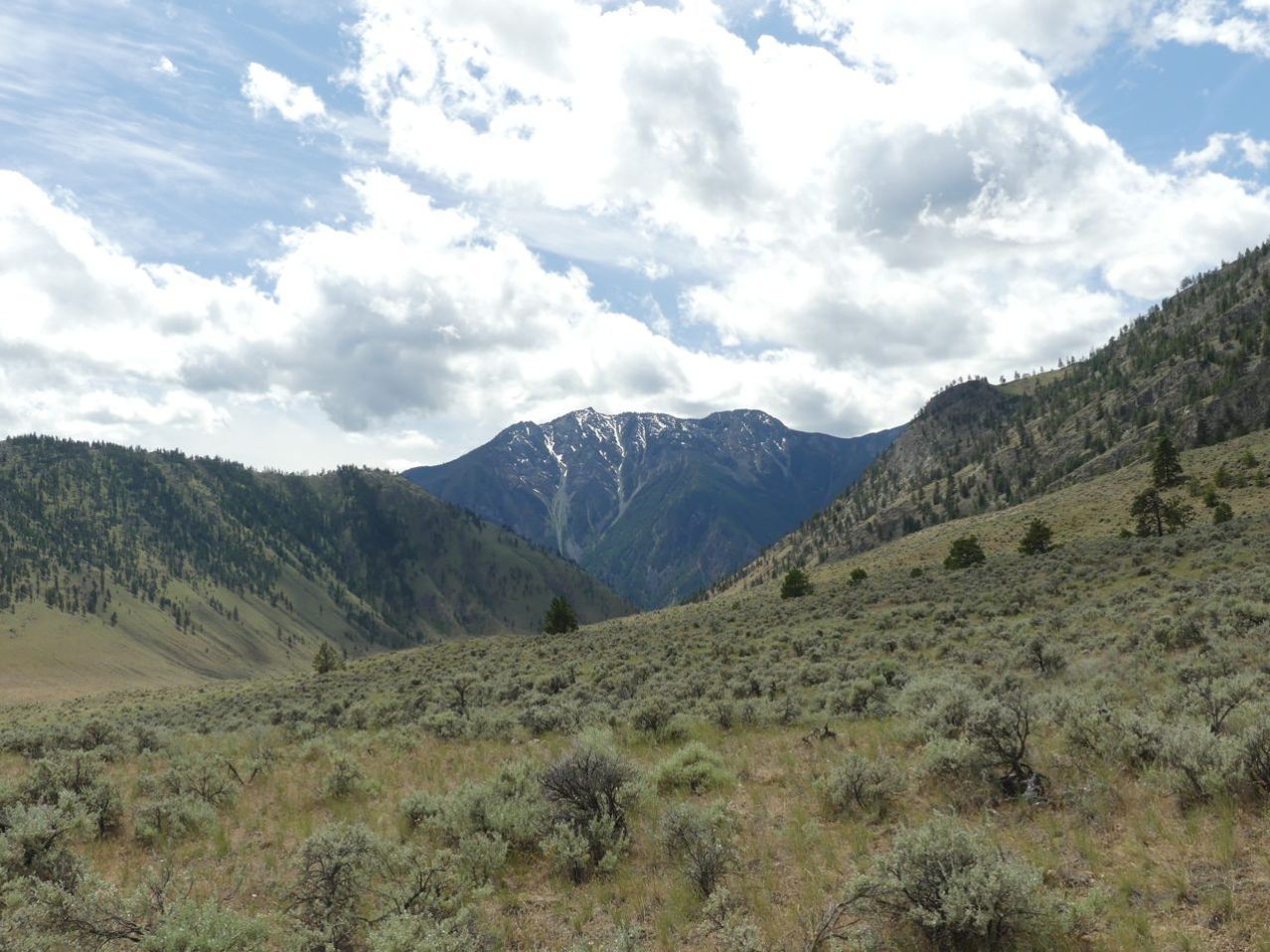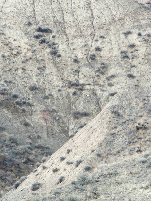 So far, we’ve had a complex mix of varied shades of blue, green, red, yellow, pink. But here (below) we are in my home valley, the Similkameen. Maybe she’ll be grey there?