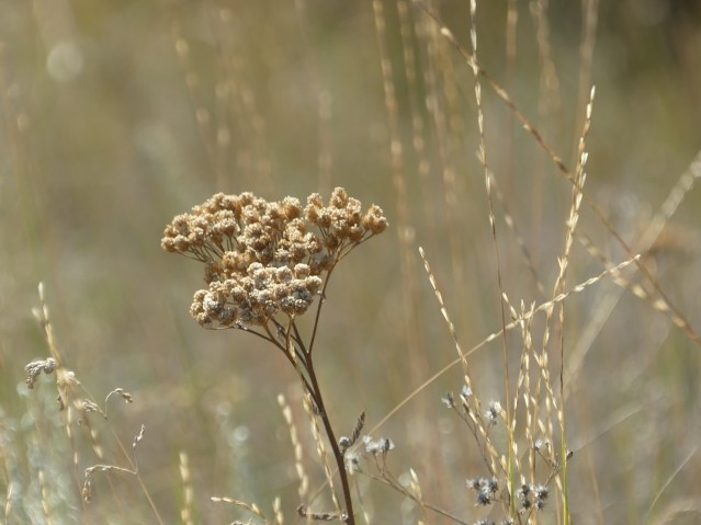 (Yarrow, flax and wheatgrass on the Big Bar Esker.)