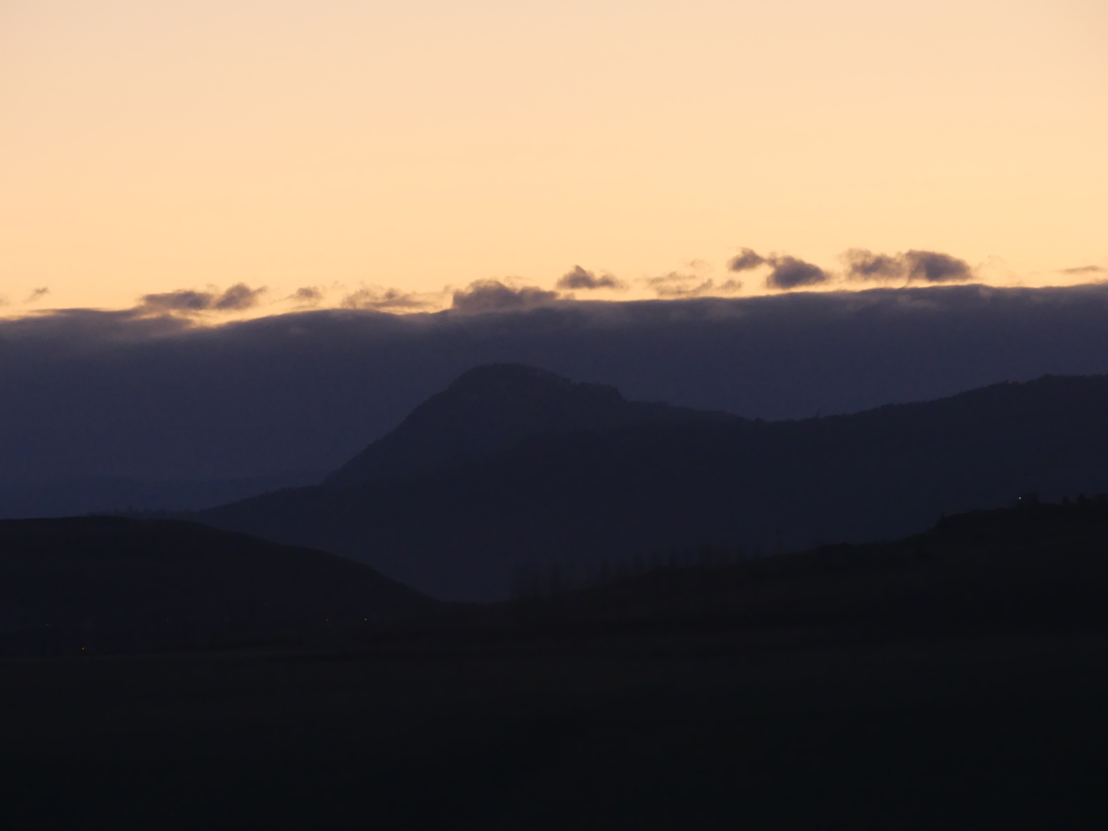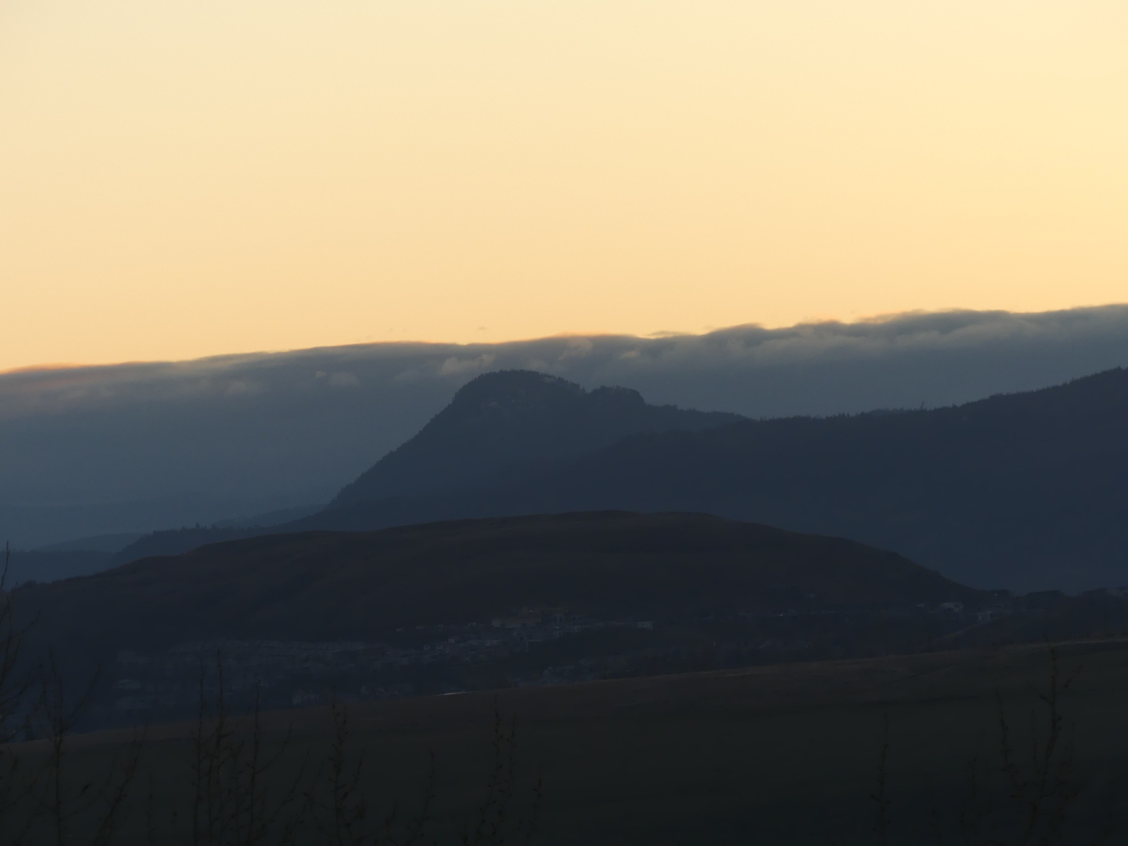 Here, have a closer look. What you’re looking at is not the “red sky of dawn” or Shakespeare’s “Dawn in russet mantle clad” but a combination of particulates from the pellet plant in Coldstream, wood stoves in Lumby, cars in Vernon and Kelowna, and more than anything, slash fires set in the forests above Kelowna, to prevent a repeat of the 2003 fire from burning down the houses of the wealthy, who live in the fire zone for the view. In other words, what you see below is not the beauty of nature but a disregard caused by human social relationships focused on humans alone.