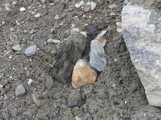 In the stone above, notice as well how frost, working together with water, achieves much the same effect as air does on more flammable stones, lifting it apart into layers, and opening it to the cold of the sky. In this one too: