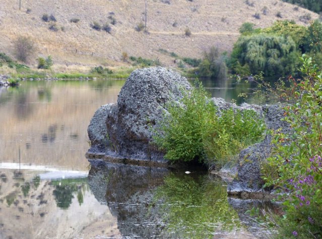 Valley? Hardly. It’s more meaningful to call it a crack in the Earth, in which water has been invited to express deep energies. Stone expresses the same energies. Here’s the Lizard Cliff above the old fishing site at sx̌ʷəx̌ʷnitkʷ. Below it, salmon were caught for thousands of years in weirs in a series of stepped falls. They are the foundation rocks of this cliff. In other words, what the cliff expressed, so did they.