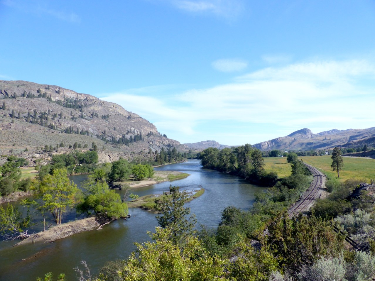 There is no lake and no river here. There is a continuous system, filling a fault line. This fault was gouged out by glaciers to form a deep fjord, which served to shift ground-up rock and water-rounded rock from the north to the south of its span, creating water in the north and sand and gravel and clay in the south. Look how the fault has been filled south of Tonasket: