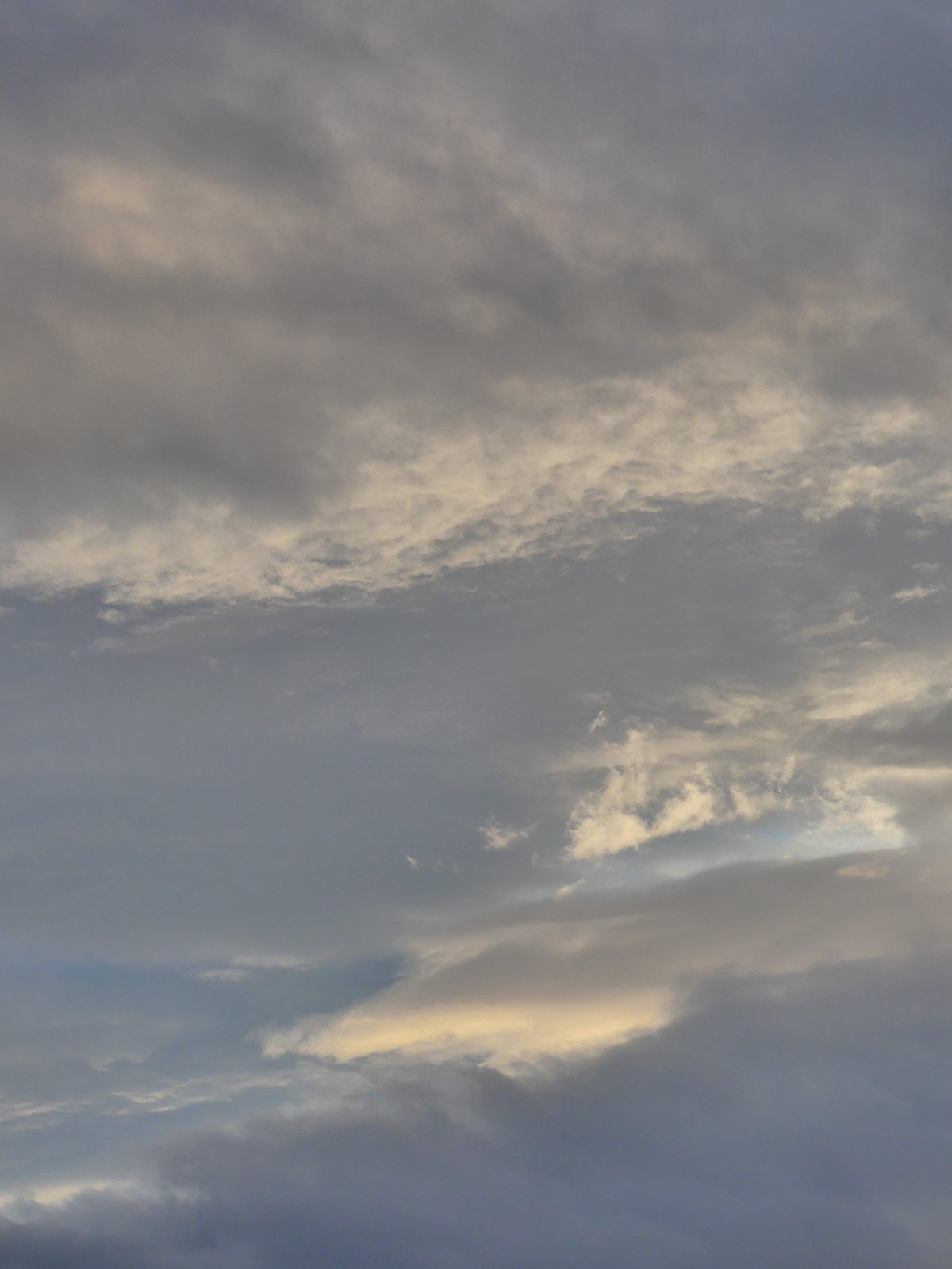 Those clouds have reformed after being stripped of water by their trip over the mountains. This isn’t a catastrophic storm, rushing off the Pacific, but simply winter air condensing as it drops from the peaks of the Coast Range.