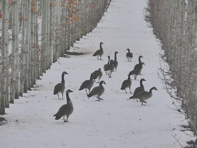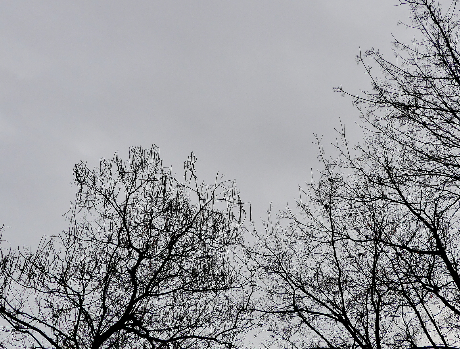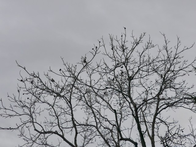 And if you plant a tree, first have a look at trees that have been planted before. The Indian bean tree on the left above is not much use. Sorry. It’s sure pretty, but there are no birds in it. The birds are in the maple to the right. If you have to plant a tree, plant a maple. Or, as you can see in the image below, a walnut. Birds will use a walnut, too.
