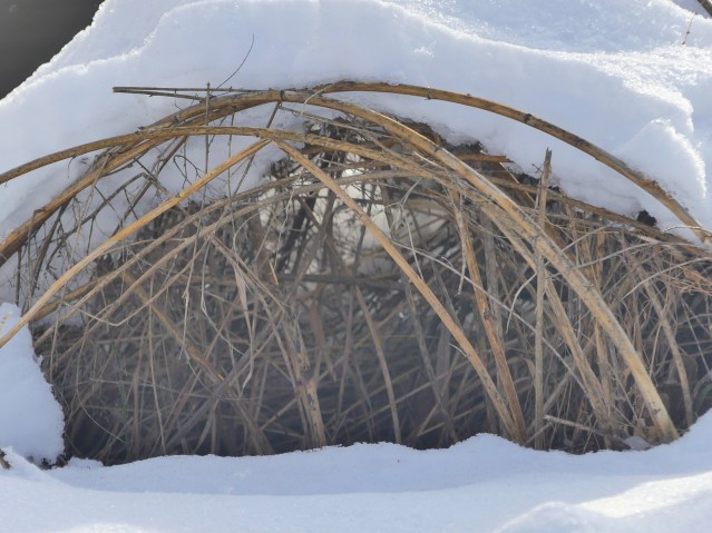 There comes a point where the inner heat of the sun, amplified by passing through the snow, melts the weight from within, and ta da.