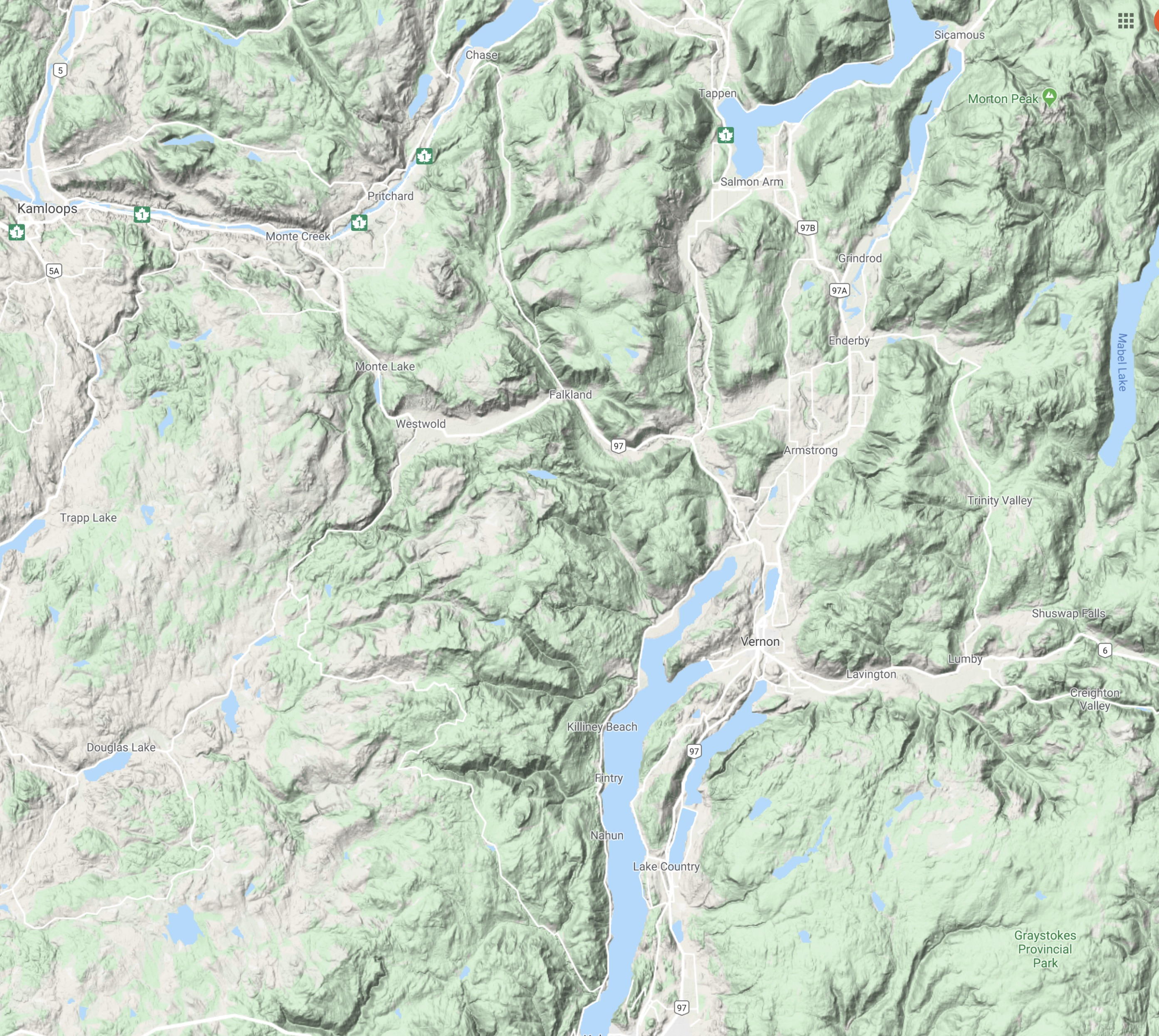 This is a map of south-central British Columbia.