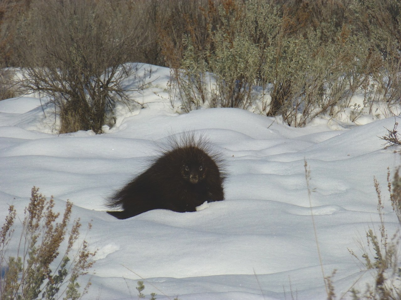 In the last couple of posts, I talked about the industrial, environmental and social costs of growing fruit in the Okanagan Valley. You can follow that discussion in this post: The True Costs of Farming in the Okanagan. I then added the racial background to the story in Race and Orcharding in British Columbia and Washington. In the third post in the series, Healing Climate Change in the Okanagan Valley, I presented some actions for positive action. In this post, we will look into the orchards that have replaced the grasslands. First, though, the porcupine. He has been hungry.