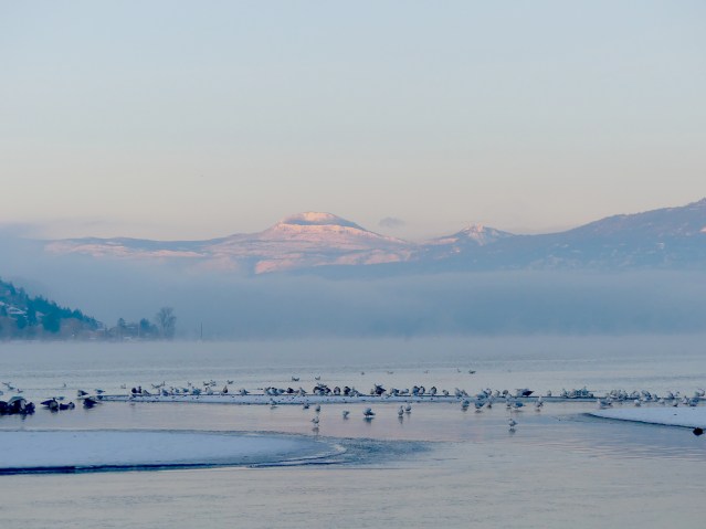 Yes, we can say “the birds awoke” but that misses the point that birds (and humans) only exist at the point where sun and water meet on Earth. They are children of the water, just as humans are children of the shore. This looking out as shore gives us the birds that are the sun becoming themselves. Same applies to Terrace Mountain, there. It is when it wakes that humans, and fowl, are set into full action. We are all, effectively, this: