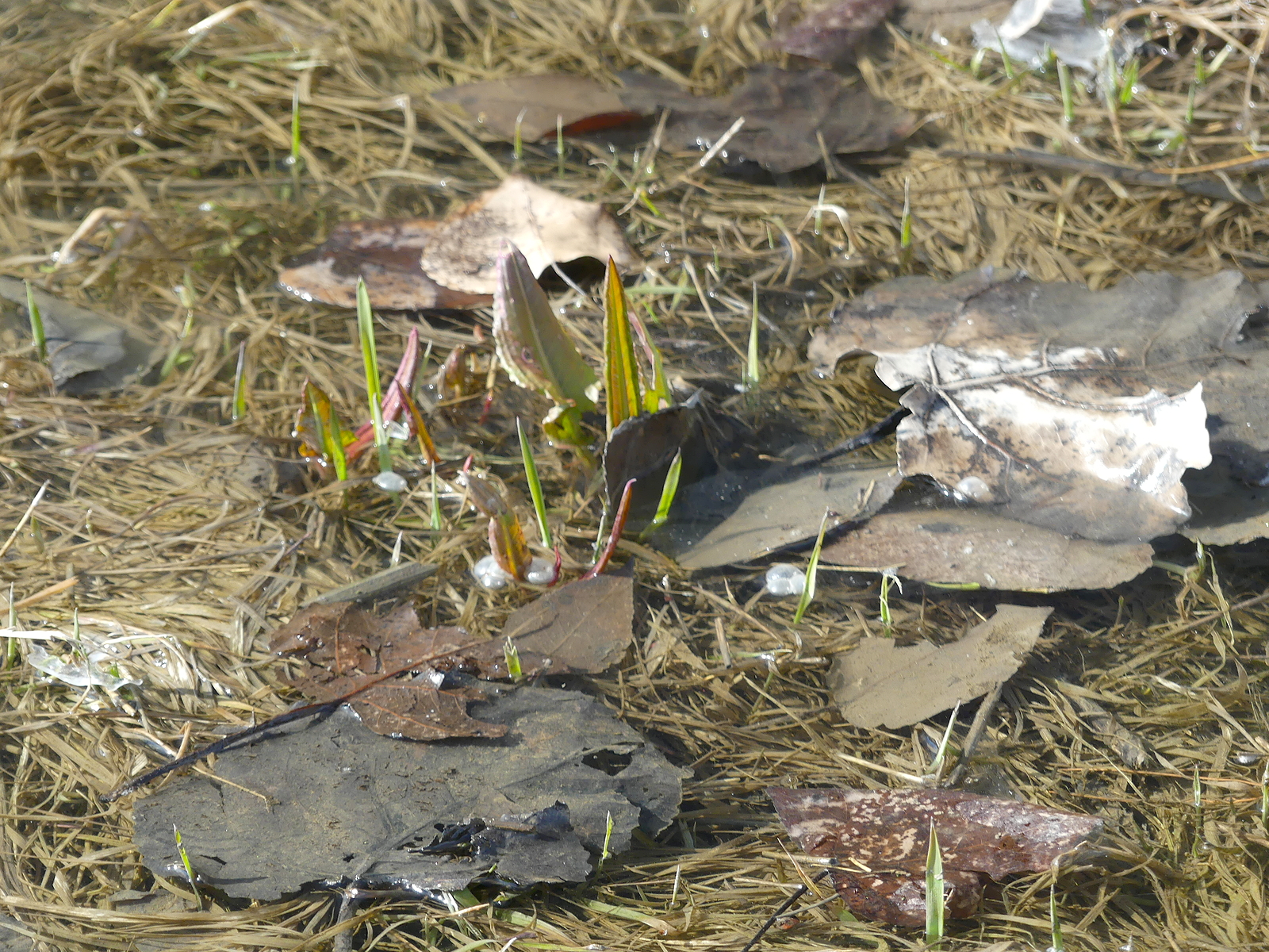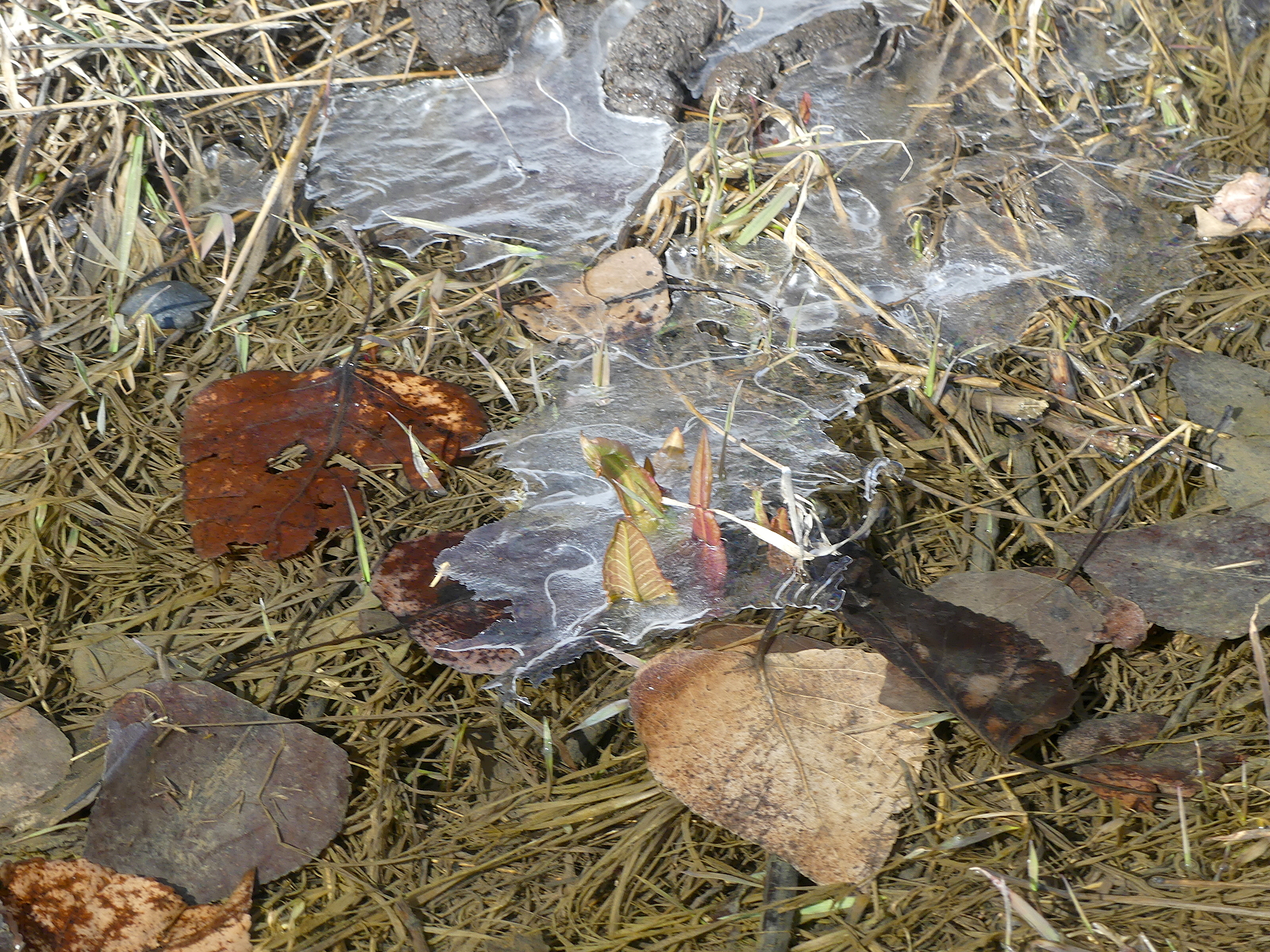 Curly dock, for example, grows through ice, thick (above) or thin (below.)