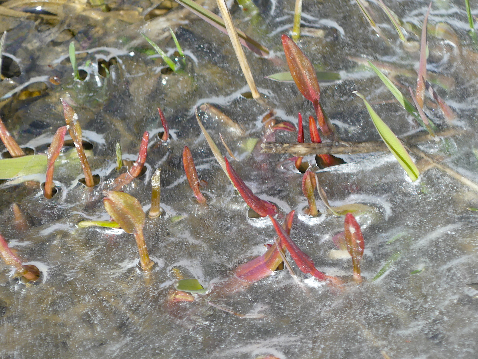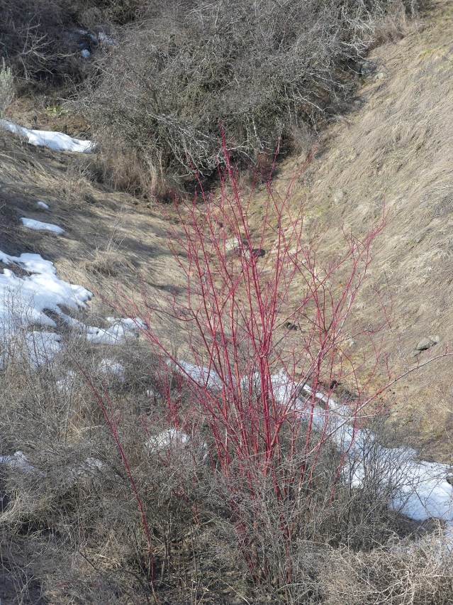 In contrast, curly dock uses red pigments to capture warmer rays of the sun and move the season ahead a couple weeks. You can just see some thatching grasses doing the same, in the upper right, although with less pigmentation.